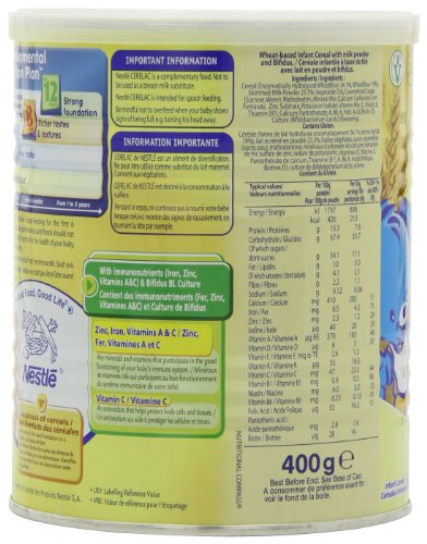 Details: Description Infant cereal is the ideal foundation as part of a healthy and balanced diet. With Bifidus BL and Immunonutrients. Bifidus BL is a pro biotic similar to those found in the digestive system of breastfed babies. Bifidus BL has been clinically proven to help keep your baby's digestive system healthy and strengthen his natural defenses. Iron and Zinc: Key minerals that actively participate in the good functioning of your baby's immune system. Vitamins A and C: Promotes development of immunity, healthy skin and intestinal barrier for natural protection.