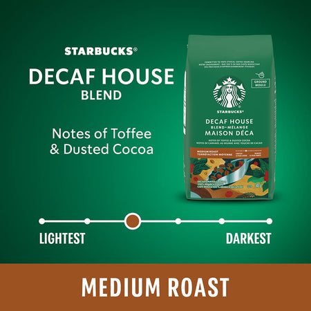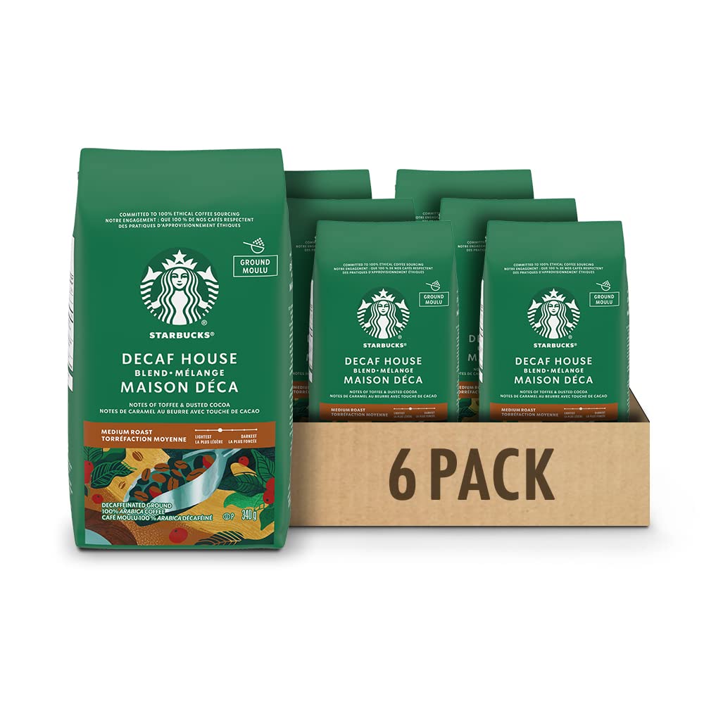 Starbucks Decaf House Blend Ground Coffee, Medium Roast, 340 Grams (pack of 6)