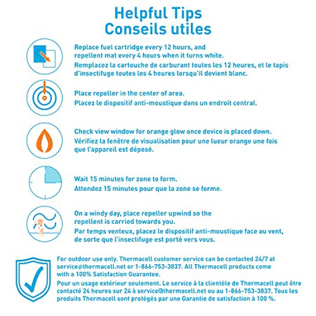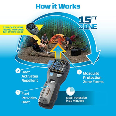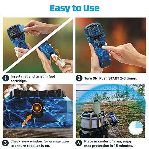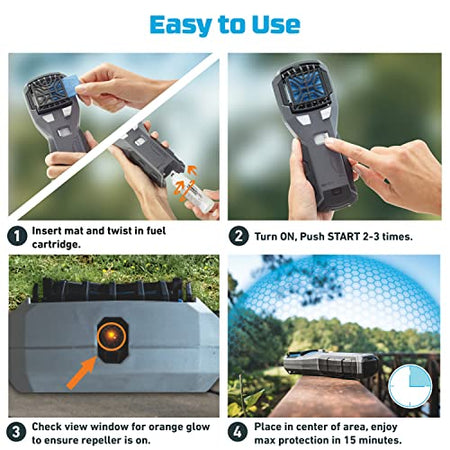 - HEAT-ACTIVATED: No cords or batteries. Powered by a safe and compact 12-hour fuel cartridge (included), repel without smoke, flames, or citronella. Not a messy trap or gimmicky sonic. Independently tested. EPA reviewed for safety & effectiveness.
