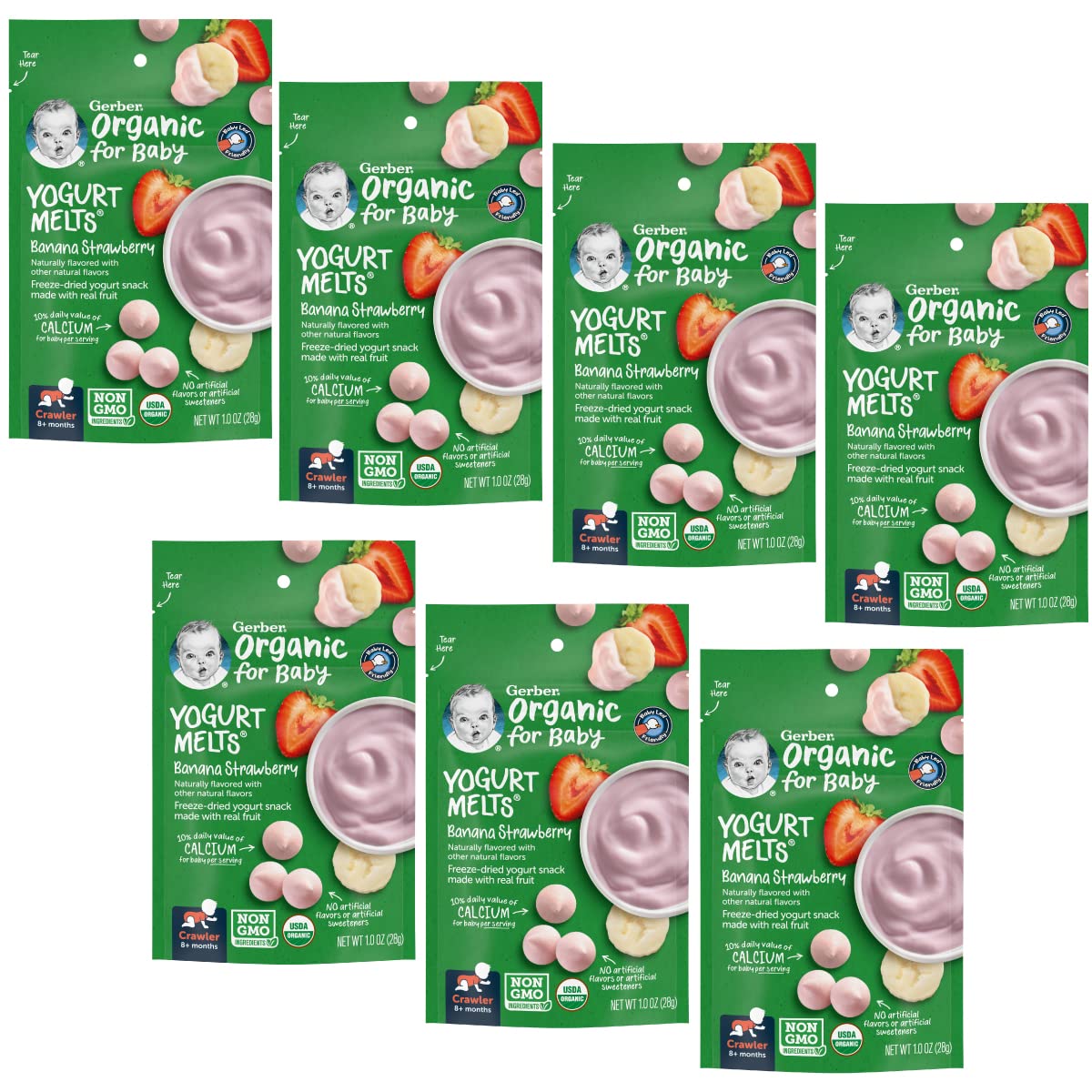 Gerber Organic Yogurt Melts Fruit Snacks, Banana and Strawberry, 1 Ounce (Pack of 7)