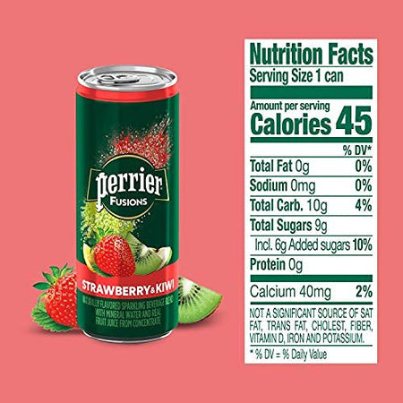 - Feel the refreshment of Perrier water and bubbles with a touch of real strawberry and kiwi fruit juices