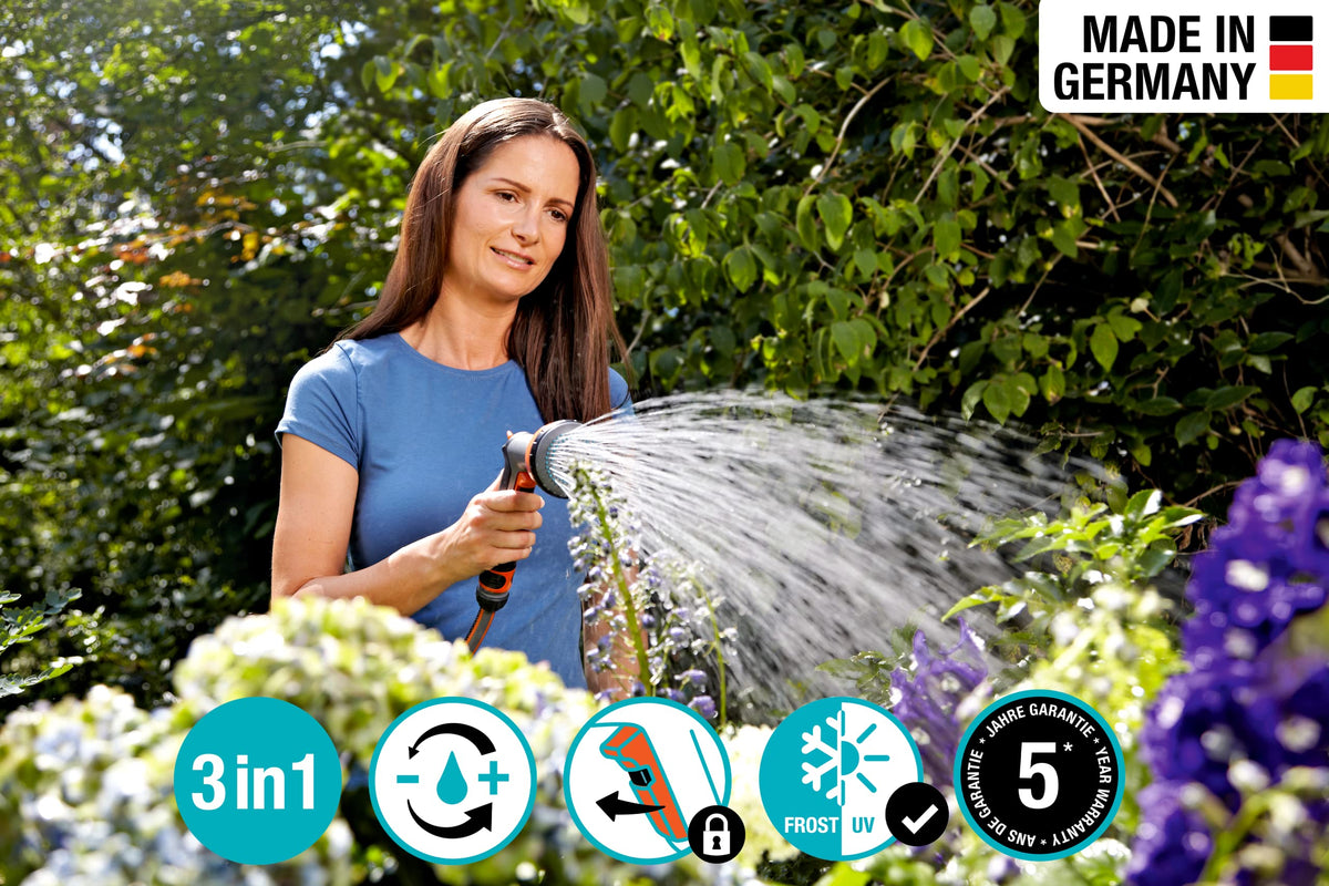 Gardena 2131-FP 3-in-1 Frost-Proof Hose Nozzle, Convenient Sprayer for Variable Watering and Cleaning tasks, Made in Germany