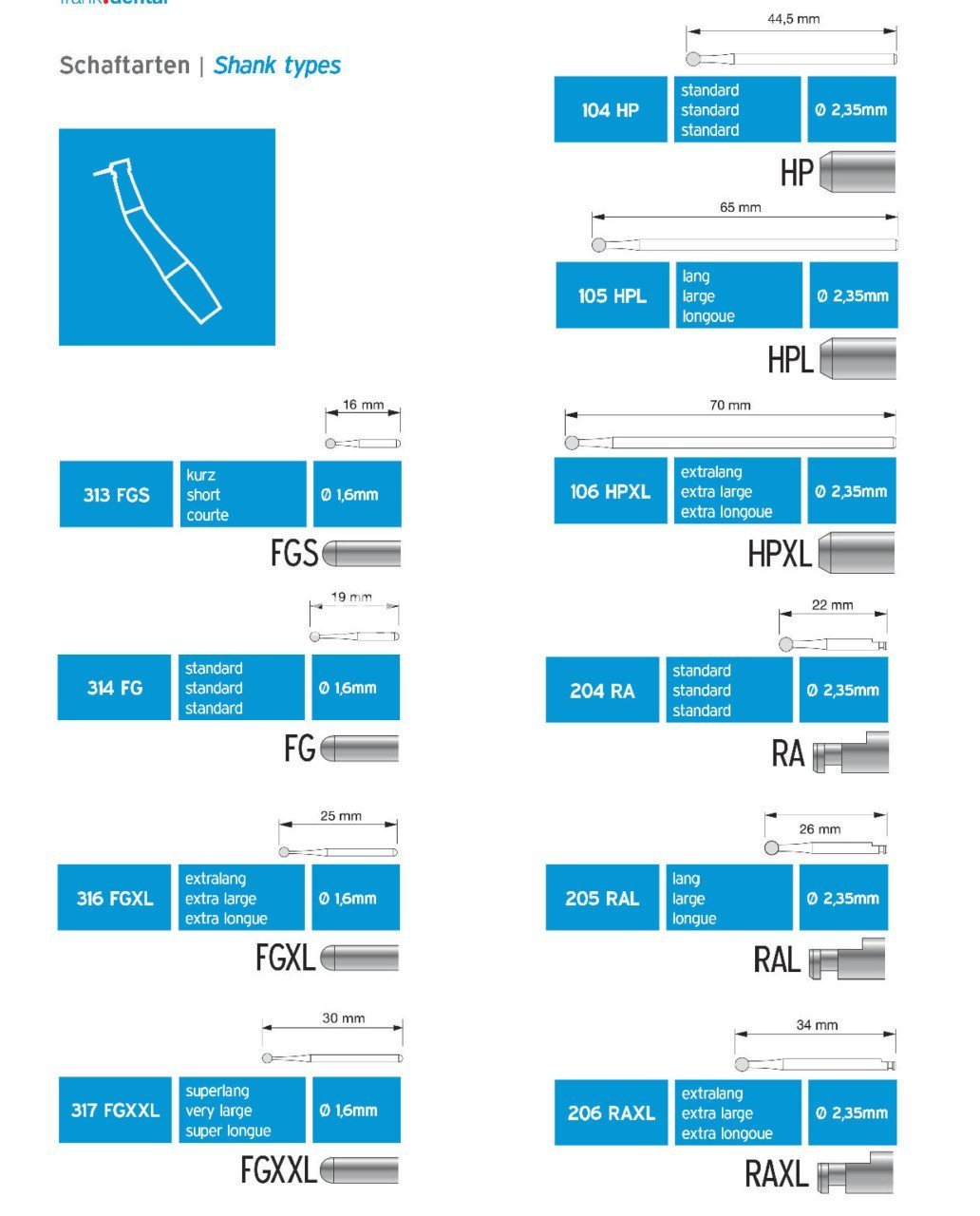 Although most commercially available diamond burs are made from synthetic diamond, burs manufactured using natural diamond stand out due to their superior quality, efficiency, and durability. Manufacturers like Frank Dental emphasize the use of natural diamond in their products, underlining this characteristic as a mark of excellence. While natural diamond burs come at a higher cost compared to synthetic options, their outstanding cutting precision and long-lasting performance justify the investment.