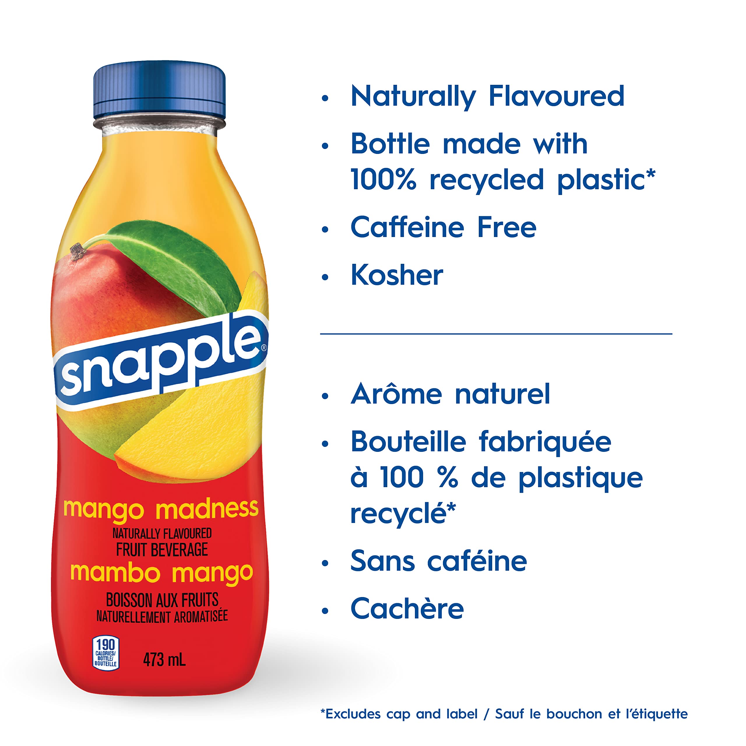 • FLAVOUR: Enjoy the great taste of Snapple Mango Madness any time of day knowing you’re getting a great-tasting drink made with natural, high-quality