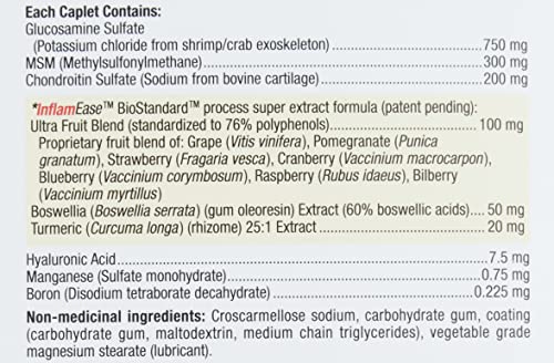 Details: Osteo Joint Ease represents the next generation of natural joint care. This innovative formula contains patented InflamEaseÔ, a synergistic combination of antioxidant, anti-inflammatory and pain-relieving botanicals that relieve pain Recent studies on inflammation reinforce traditional use of fruit compounds to address pain and stiffness. Osteo Joint Ease with anti-inflammatory InflamEaseÔ fruit and nutrient complex, addresses the source of joint pain by addressing inflammation. It includes boswellia and turmeric. One of the newest natural products for joint support and relief is Collagen II. It stars in this formula with glucosamine sulfate, along with hyaluronic acid, manganese and boron