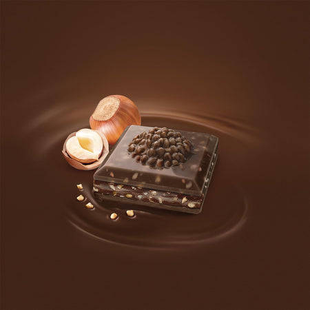• DARK CHOCOLATE AND HAZELNUT: Smooth dark chocolate, crunchy hazelnut pieces and exquisite creamy filling combine in a sophisticated indulgence.
