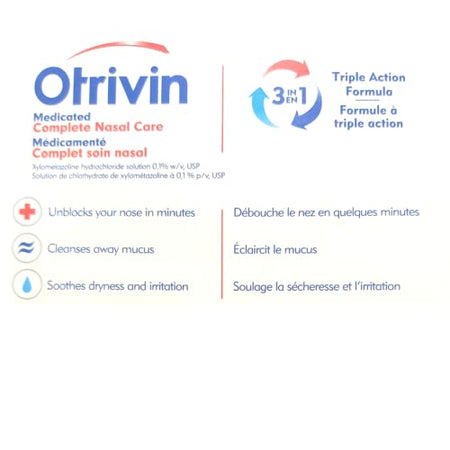• Otrivin Medicated Complete Nasal Care Triple Action Formula is designed for the temporary relief of nasal and sinus congestion due to a cold, allergies and hay fever.