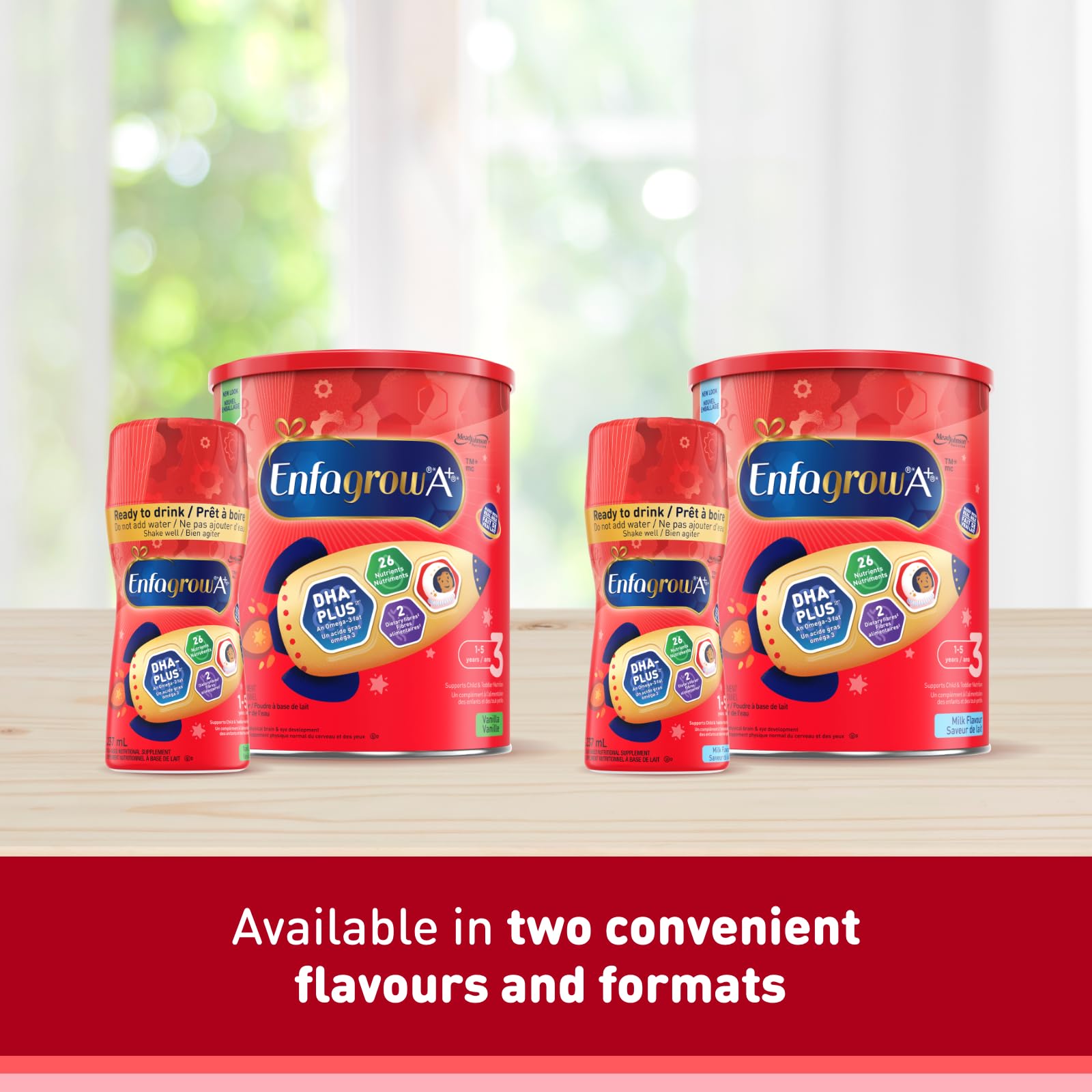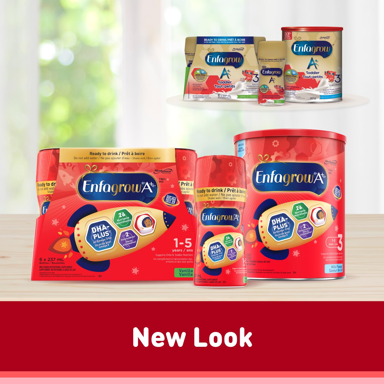Details: Description Enfagrow A+ is an every day toddler nutritional drink that has brain building DHA. It also has 26 nutrients to help support normal growth including fibre, iron, calcium, vitamins C and D. And because it can be served with a meal or as a nutritious snack, it’s an easy addition to your toddler’s regular diet. Now availble in Ready to Drink bottles.