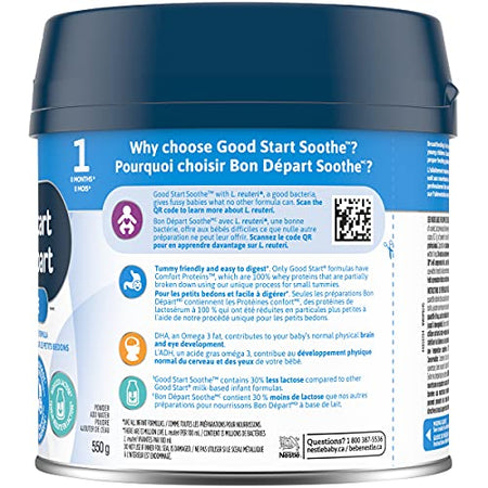 Details: Description Our most tummy sensitive formula. GOOD START SOOTHE Powder Baby Formula (550 g) is the first and only formula with L. reuteri, and designed with extra comfort in mind. Tummy friendly and easy to digest