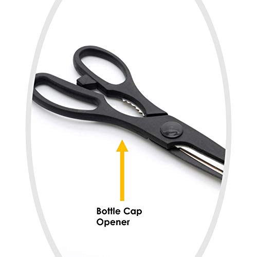 - MULTIFUNCTION - Multi-purpose scissors that can cut meat and vegetables, fresh or dried fruits, herbs and much more. Also made with a built-in bottle opener is practical for beer bottle or to crack open nuts.