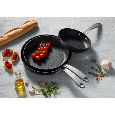 The Rock Skillet Set with Riveted Stainless Steel Handles for a Safe Grip & Forged Aluminum Base for Optimal Heat Distribution, 3-Piece Set