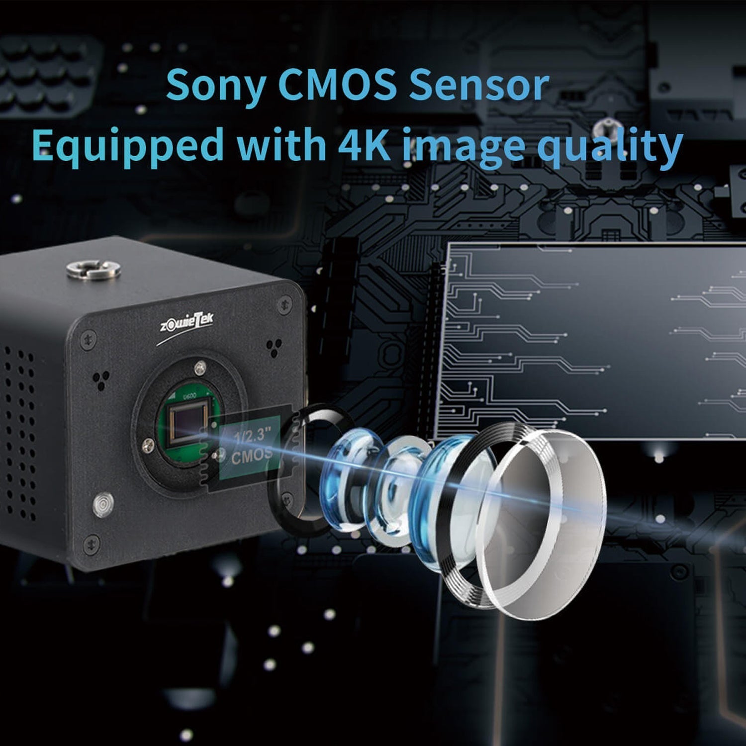 The ZowieCam equips Sony Ultra-HD 4K back-illuminated and stacked Exmor R CMOS sensor, magnification for detailed close-up view.