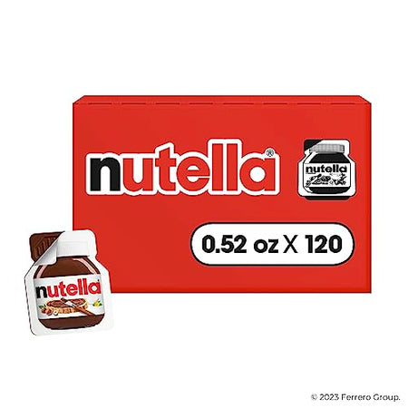 - NUTELLA HAZELNUT SINGLE-SERVE SPREAD: Spread the joy with everyone’s favorite hazelnut spread in this pack of 120 .52-oz Nutella single-serve mini cups for restaurants