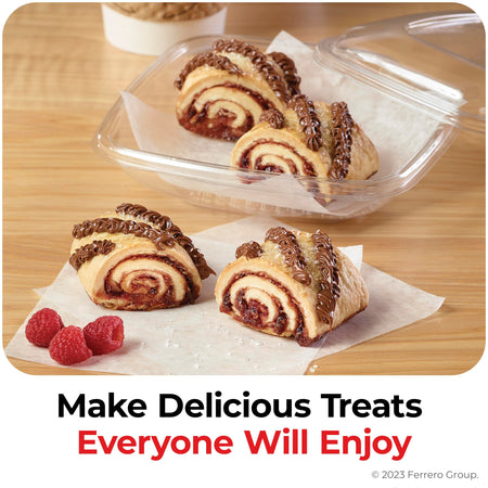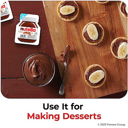 Details: Description Serve up everyone's favorite hazelnut spread with these Nutella Food Service Mini Cups. These adorable single-serve portions of Nutella are perfect for serving tableside to your customers, letting them enjoy and pair the delicious taste of our hazelnut spread with your best menu items. Each .52-oz, single-serve pack of Nutella contains the irresistibly creamy and iconic taste of the hazelnut spread with cocoa that everyone knows and loves. From a sweet ingredient to an irresistible topping, Nutella is perfect to add to all kinds of treats. Adding Nutella can make your cupcakes, muffins, cookies and other unique recipes more irresistible.