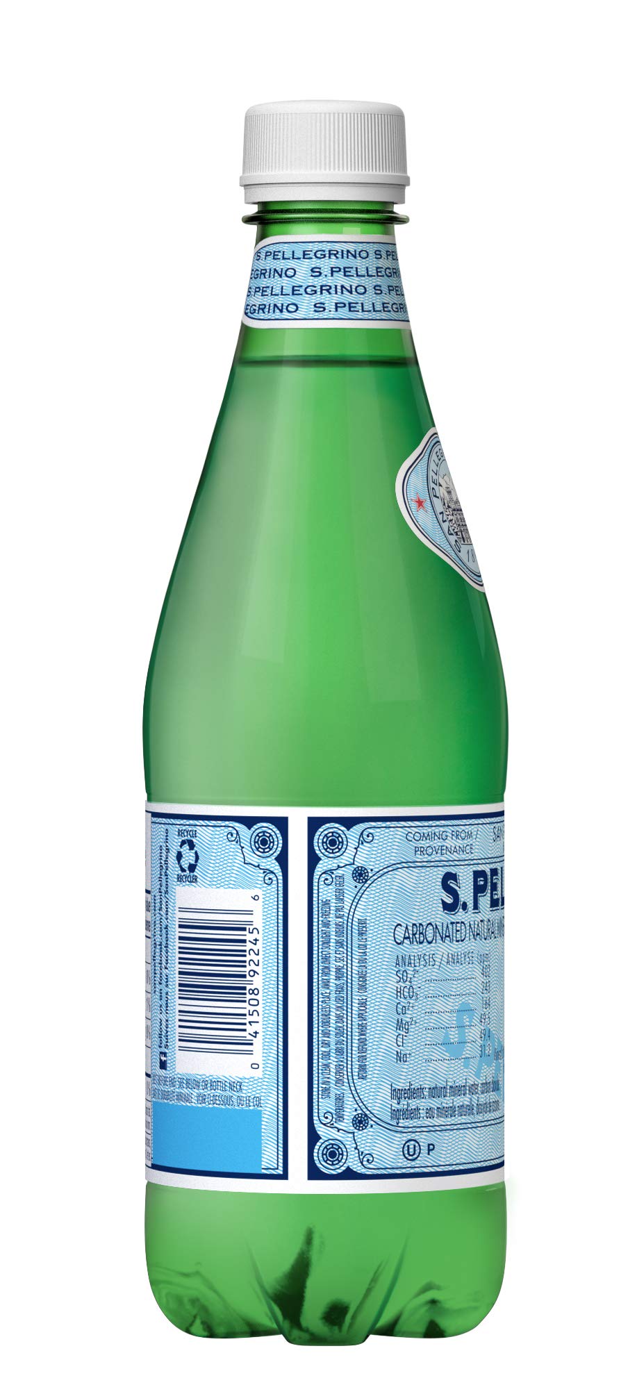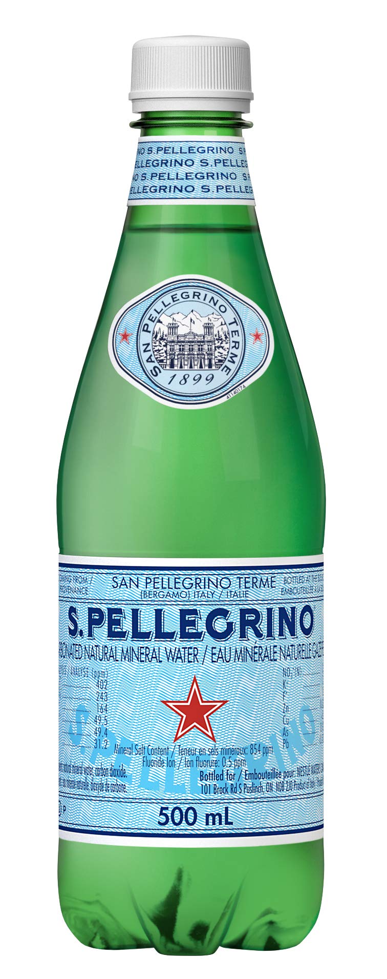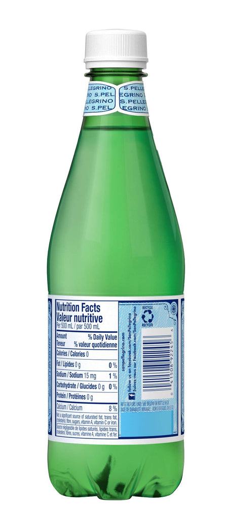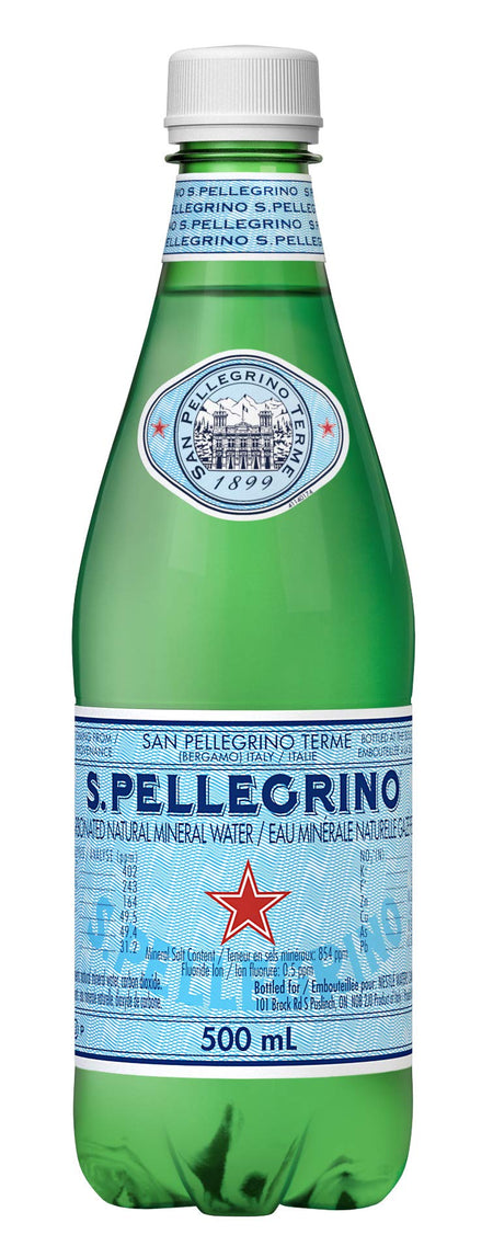 Details: Description S. PELLEGRINO Carbonated Natural Mineral Water has been an icon of Italian style since 1899 and is the jewel of sparkling mineral waters. During its 30-year journey through the rock to the foothills of the Italian Alps, the water is naturally enriched with calcium and magnesium. Its signature gentle bubbles, subtle nuances, and perfect mineral balance enhances your convivial fine food occasions and elevates your special moments. S. PELLEGRINO is strongly committed to safeguarding the Earth’s precious gifts and is dedicated to protecting the source of taste by looking after the territories, managing resources sustainably and respecting the environment by becoming 100% carbon neutral by 2022. Today, S. PELLEGRINO 500 mL plastic bottles are 100% recyclable and are made with 25% recycled plastic. S. PELLEGRINO graces tables of fine dining restaurants around the world and is the perfect food pairing for your special occasions. It is known for its unmistakeable taste, with zero calories and sweeteners. The 500 mL plastic bottle is the ideal size for a convenient on-the-go drink to enjoy with a delicious meal wherever you go.