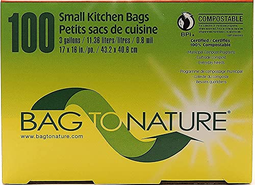 Bag to Nature- Biodegradable and Compostable Mini Kitchen Garbage Bags for Countertop Food Waste Compost Bins (by Bag-To-Nature, 100 Count)