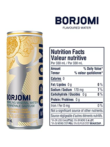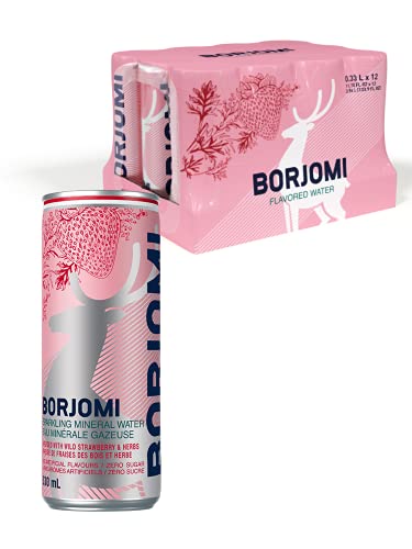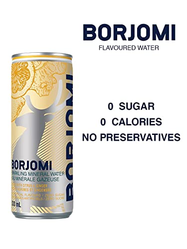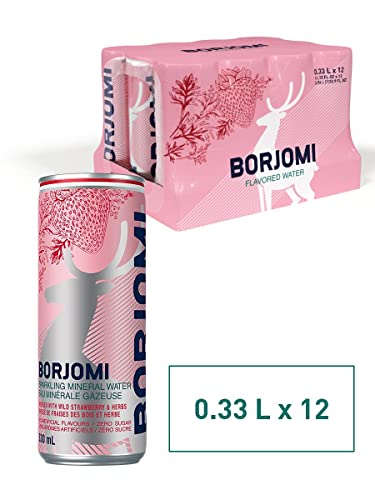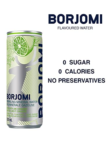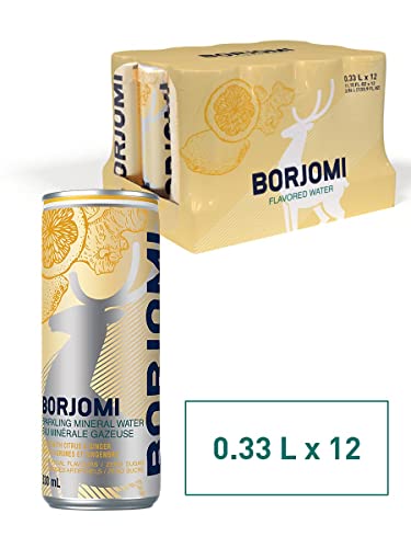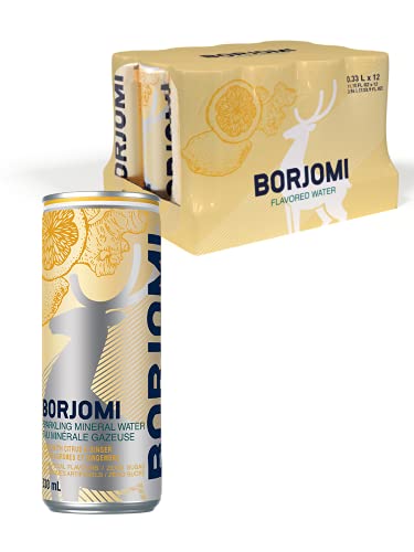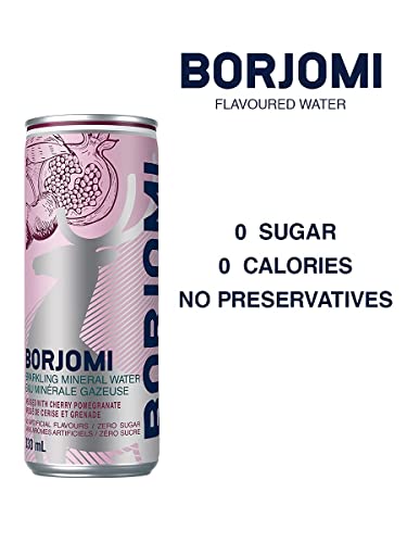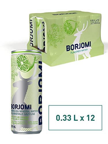 Borjomi Mineral Sparkling Water - pack Of 12 Can - natural spring water - 330ml (11.15 Fl. Oz. Ea) mineral drinking water - Naturally Carbonated Flavoured Sparkling Water