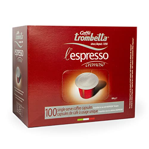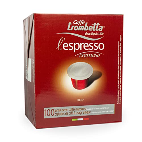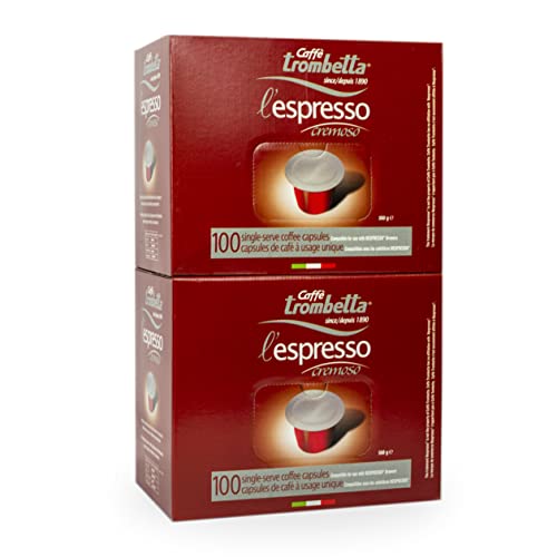 Details: Caffe Trombetta - "Cremoso" - 200 Nespresso Compatible Capsules - Made in Italy Compatible with original line Nespresso Brewers A selection of fine blended and roasted coffees to prepare a creamy espresso with a rich and harmonious aroma. Product of Italy