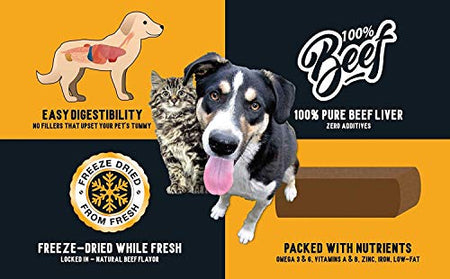 • YOUR PET WILL LOVE IT - As pet parents, we have all bought products our pet's won't eat! That’s why we’ve prepared our beef liver treats for dogs to be as fresh and tasty as possible. Freeze-dried while fresh to lock in their all-natural beef flavor – and the full benefits of their wholesome, natural contents – our dog biscuits have a delicious, straight from nature taste your dog will love.