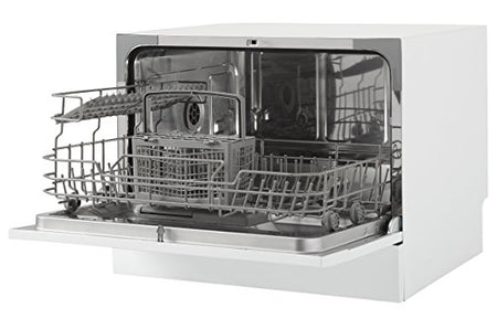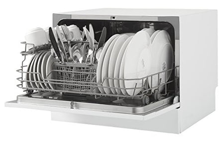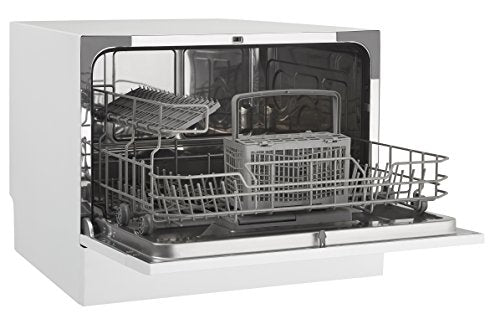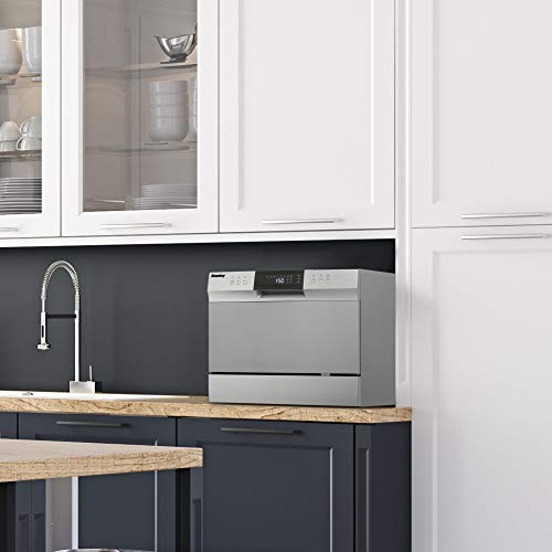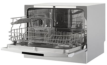 Details: Washing has never been easier as it is with this stylish counter-top dishwasher. This unit utilizes just 3.1 Gallons (11.7 Liters) of water for a normal cycle. It comes with six different settings which can easily be programmed and monitored via the electronic led display. The wash cycles range from soak, glass, rapid, economy, normal, and intensive. The dishwasher is designed for simple and quick installation as it can easily be hooked up to any tap in your kitchen. Keeping the appliance clean is a breeze due to its durable stainless-steel interior. There is an auto detergent and rinse agent dispenser for your convenience and this chic dishwashing unit is designed to fit under just about any type of kitchen cabinet. It also comes with a 12-month warranty on parts and labor.