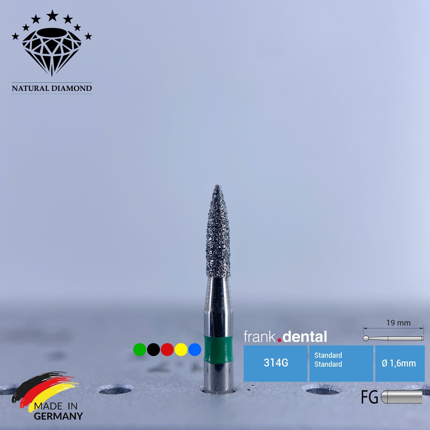 The 860 model, characterized by its flame shape, is designed for precise and effective cutting, making it ideal for a range of dental applications. Produced by Frank Dental in Germany, these diamond burs meet the highest standards of quality and reliability, ensuring excellent performance for professional use in dental practices.