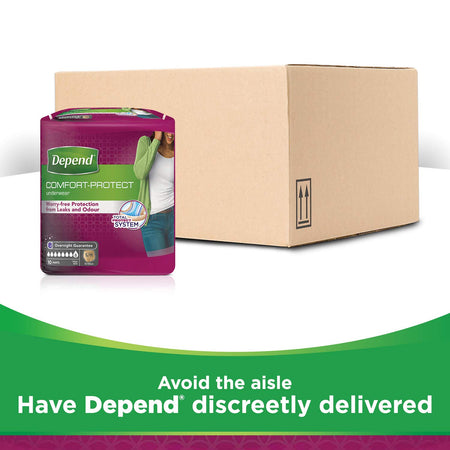 Details: Description Depend incontinence pants for women available in a soft peach colour and more flexible to move with you unlike bulky adult nappies;Worry-free odour control and specially made to fit the shape of a woman with an underwear-like waistband and oval-cut leg openings;Depend disposable underwear has Fit-Flex protection with Lycra strands to ensure a smooth, sleek fit for complete discretion;Depend provides guaranteed overnight protection, always ships discretely in a plain box and are eligible for VAT relief (UK only);Waist size: 70-105 cm