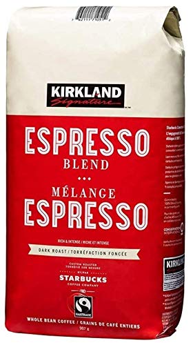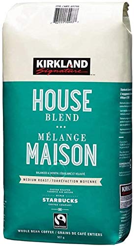 Details: A set of one Kirkland House Blend and one Espresso Blend coffee beans custom roasted by Starbucks, 907 gram each.