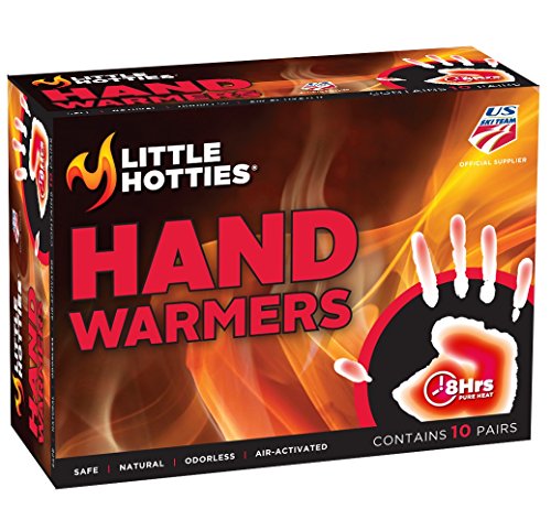 Details: Little Hotties are odorless, environmentally friendly and provide a heat source for comfort in all cold conditions. They are the choice of athletes, anglers, hunters, campers, spectators, skiers, construction workers and more. Precautions Little Hotties Hand Warmers can become very hot (up to 165°F/74°C) direct contact with skin could result in burns. If warmers are used incorrectly, higher temperatures may occur, causing burns. Supervision is needed for use by the elderly, infants, children, people with sensitive skin and by people not fully aware of the sensation of heat. People with diabetes, frostbite, scars, open wounds, bruising, swelling or circulatory problems should consult a physician before using Little Hotties Hand Warmers. Remove warmers immediately if they become uncomfortable or too hot. Do not allow the contents to come in contact with eyes or mouth. If contact occurs, wash thoroughly with clean water. Hand Warmers are 8 Hours of Heat Toe Warmers are 5 Hours of Heat
