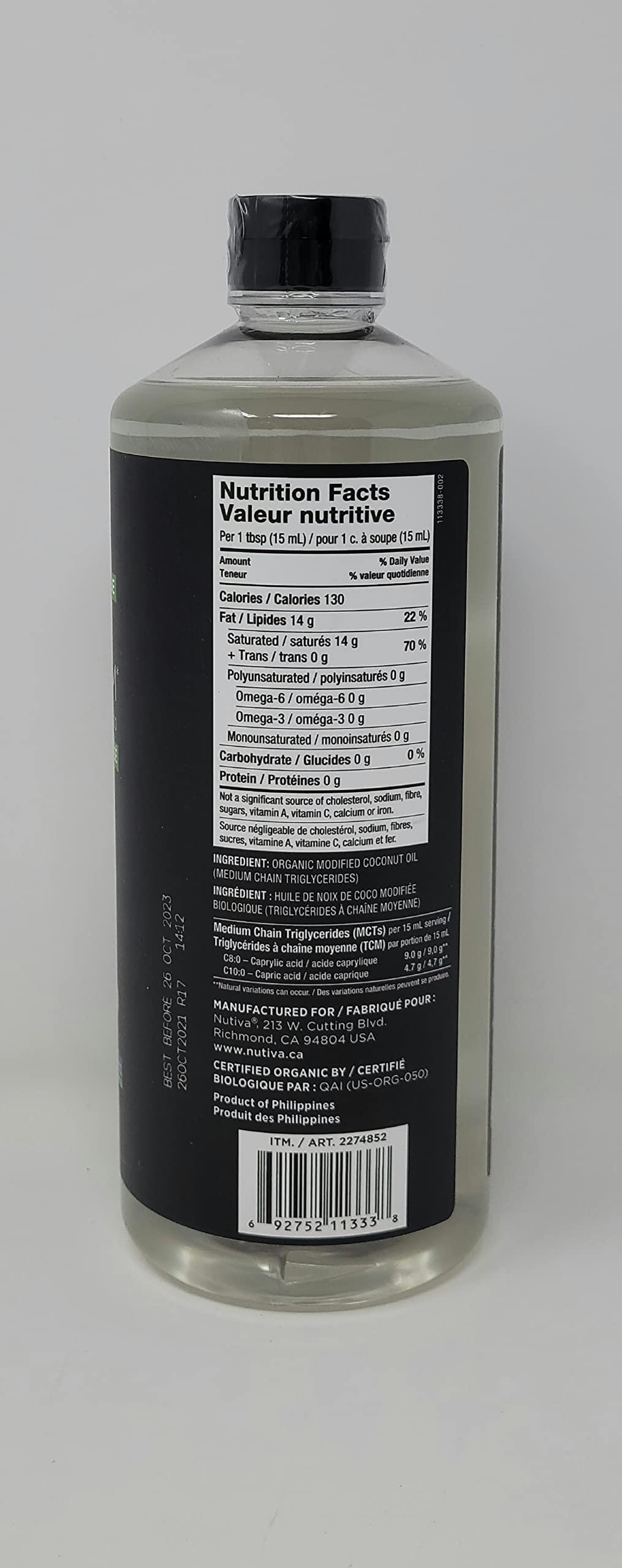 Nutiva Certified Organic MCT Oil, 1.18L, 14.0 grams