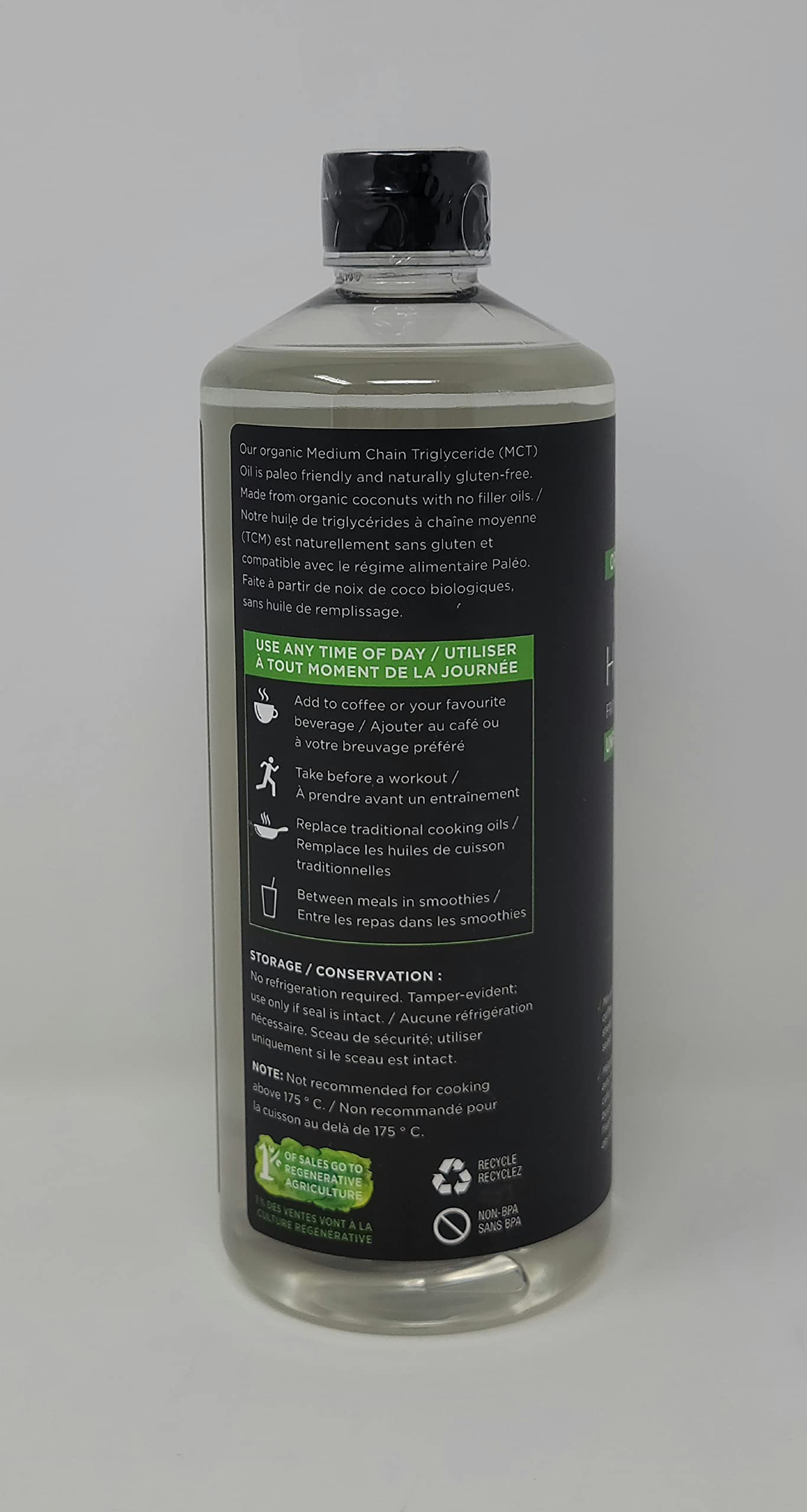 Details: Description Nutiva Organic MCT Oil, made from non-GMO, certified organic fresh coconuts, contains concentrated MCTs - medium-chain triglycerides- called capric acid (C10) and caprylic acid (C8). This organically extracted, pure oil is easy to digest and suitable for vegetarian, vegan, whole food, paleo, ketogenic, and gluten-free diets. Add to coffee, smoothies and salad dressings.