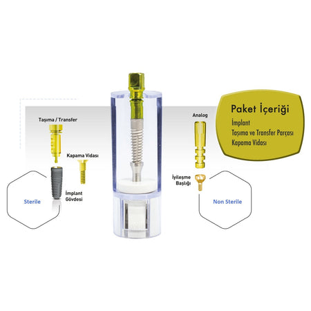 After the implant application, all of the parts to be used are served to the patient in non-sterile packaging.