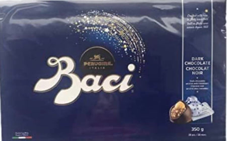 Details: Description For a special gift choose the Baci Perugina Original Dark Box. Like a jewellery box, once opened, the box will reveal the Baci Perugina chocolates in the classic recipe and it will be a pleasure for both the eyes and the palate.