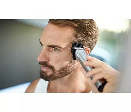 Details: Groom your beard, hair and body with this fully washable all-in-one trimmer. 5 attachments and 13 combs give you the freedom to create different styles from head to toe, while the powerful trimmer helps you trim through thick hair evenly and gently. Self-sharpening steel blades Skin-friendly, high-performance blades for a gentle trim 6 hour run time per charge Quick charge: 5 minute quick charge for one trim. LED Display battery and Travel Lock indicators Travel lock prevents the trimmer from accidently turning on. Easily store, or travel with the trimmer and attachments