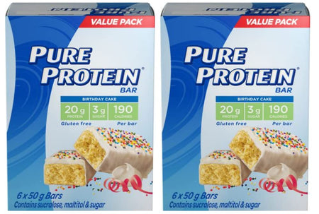 Pure Protein Birthday Cake Gluten Free Bar (6 x 50g Bars) (2 Pack)