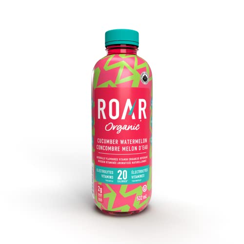 Roar | Organic Electrolyte Infusion - Low Calorie Natural Hydration | 12-Pack (Cucumber Watermelon)