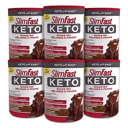 SlimFast Keto Shake Mix with Whey and Collagen Protein - 6 in Case, Fudge Brownie Batter Flavour, 2340 Grams