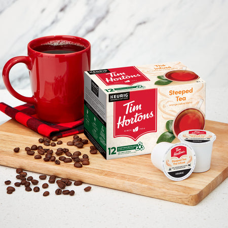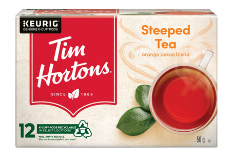 Details: Description A special blend of Orange Pekoe and cut black tea with the same classic flavour and premium quality as our delicious Tim Hortons Steeped Tea. For use with Keurig home brewing systems.