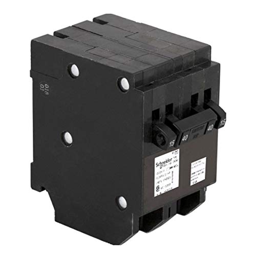 Details: Reduce costs by fitting more circuits into smaller panels. This quad circuit breaker provides a full range of circuit ampacity from 15A to 50A. It allows to reduce the size of the current panels or expand panel capacity for applications requiring more circuits. Using quad tandems is ideal for remodel, multi-family and light commercial construction. This breaker provides overload and short circuit protection and contains: 1 - double pole 40A breaker inner circuit and 2 single pole 15A breakers outer circuits. It has a 10,000 Amperes Interrupting Rating (AIR), is CSA certified for use as HACR (heating, air conditioning & refrigeration) type circuit breakers and is CSA approved to only install in Canadian Homeline loadcentres. It measures 3" x 2" x 3.25".