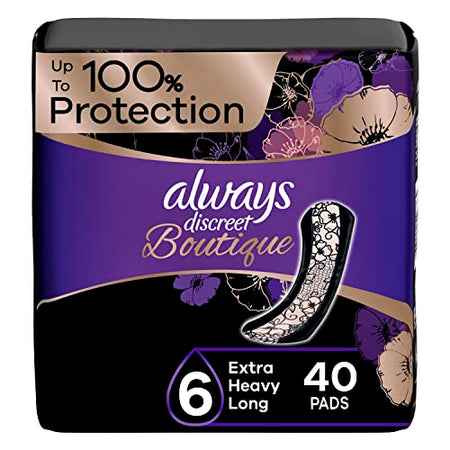 Always Discreet Boutique, Incontinence & Postpartum Pads For Women, Size 6, Extra Heavy Absorbency, Long Length, 20 Count x 2 Pack (40 Count total)