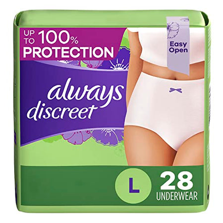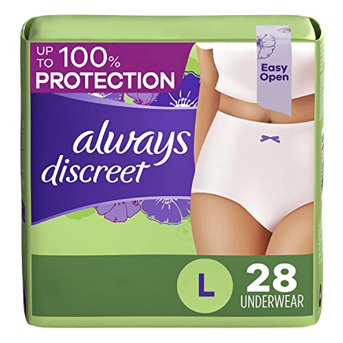 Always Discreet Incontinence & Postpartum Underwear for Women, Maximum Protection, Size Large, 28 Count