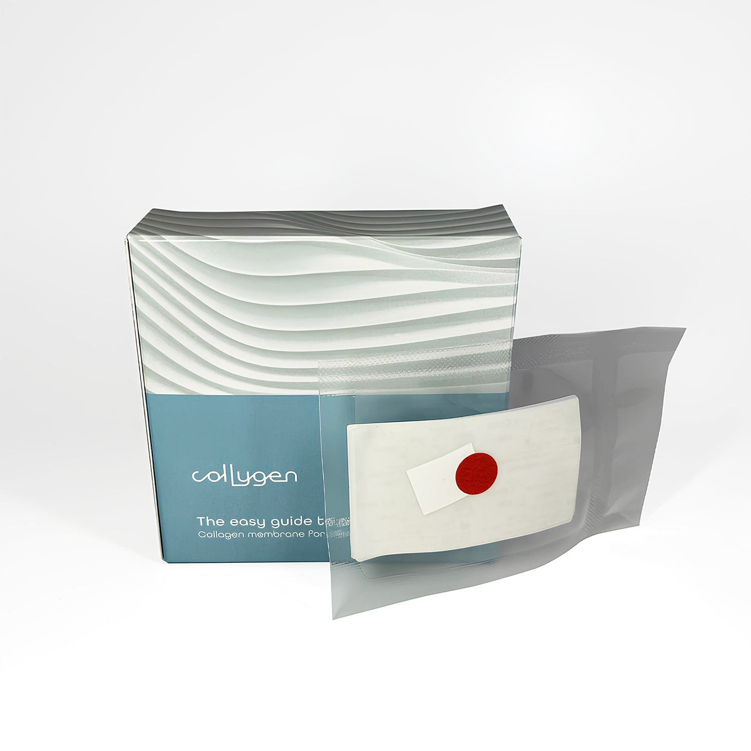 The collagen membrane can be easily placed in position after bone grafting. Its collagen structure ensures easy and effective adhesion to the grafted bone surface, providing optimal protection for the implantation site from soft tissue infiltration, without requiring any fixation.