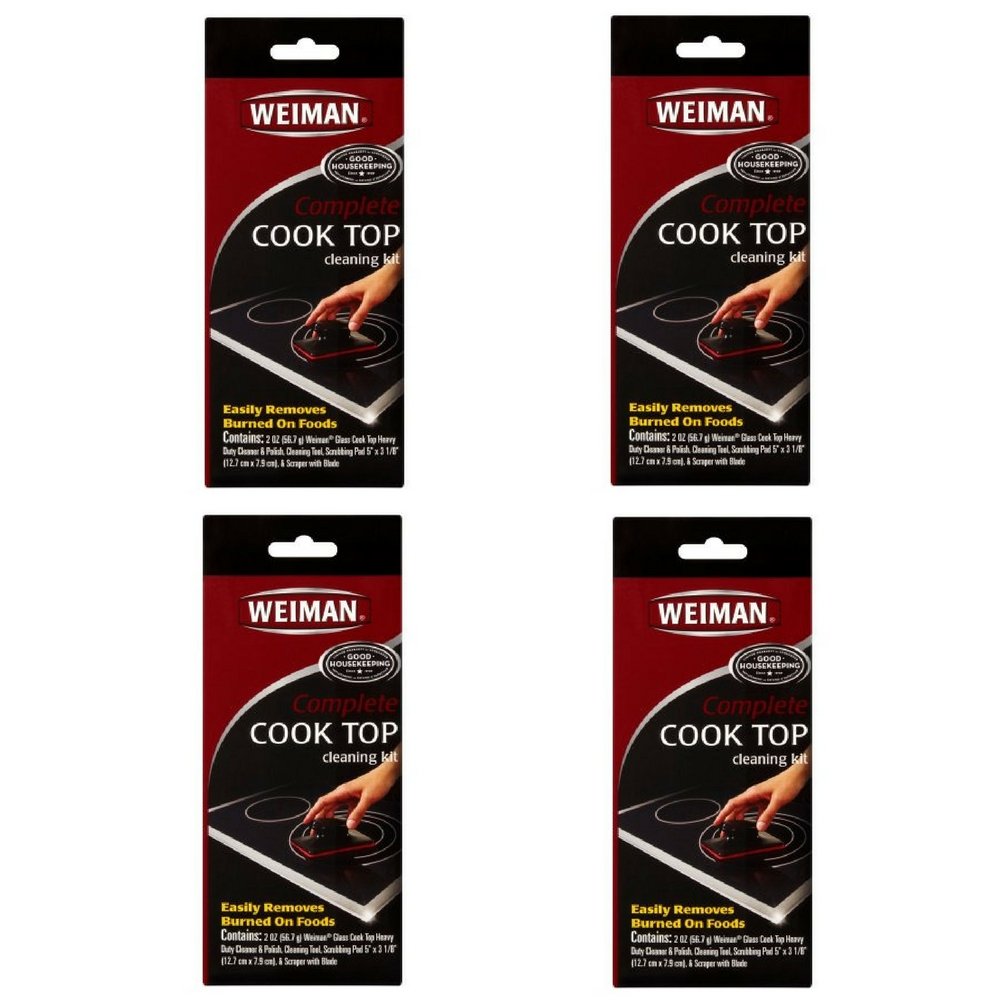 Details: Weiman Complete Cook Top Cleaning Kit. New. Easily removes burnt on foods. Contains: Cleaning tool, scrubbing pad, cleaner & scraper.
